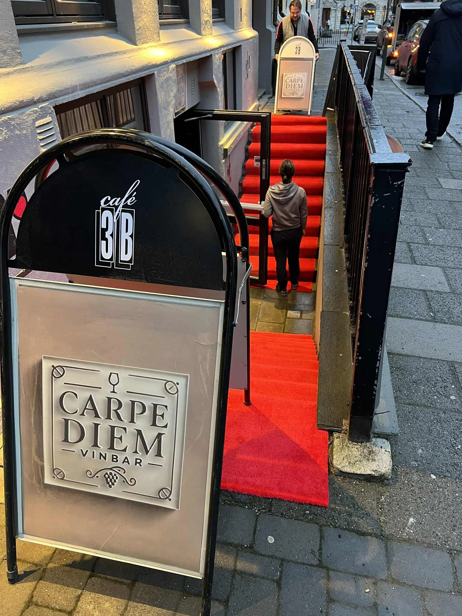 Carpe Diem har sitt hovedfokus på viner fra Moldova, Ukraina og Romania, med en svært dyktig moldovsk vinkelner som god veileder inn til, for mange, ukjente perler. Men vinlisten inneholder også overraskende mye godt fra den øvrige vinverden, til utrolig gode priser. Barolo, Chianti, Brunello og burgundere til under 1000-lappen for flaska finner du ikke mange steder. Lokalet i kjelleren på ikoniske 3B hadde vinkvelder med gode priser også i «gamle dager», så det er ikke nytt med vin der. Koselig og stemningsfullt, god musikk på høyttalerne, spennende fotografier på veggene. Og enkel, men god matservering i form av pinsa og spekemat/oste-fjøler.