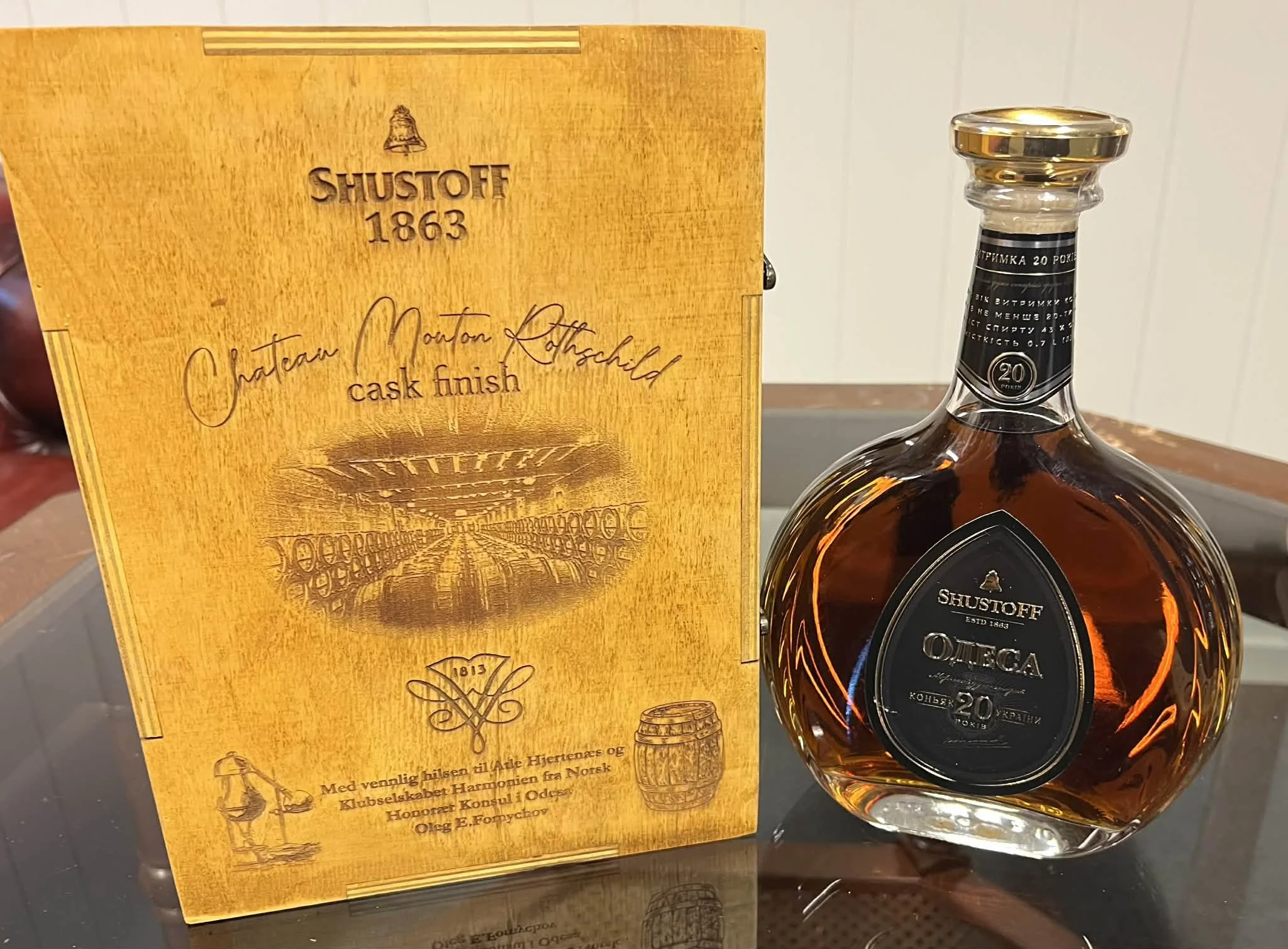 Det første produktet de har lansert på Vinmonopolet, Shustoff Odessa 20, er satt sammen av brandy som har vært lagret fra 22 til 41 år på eikefat.