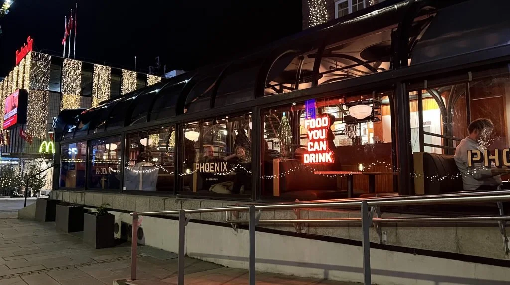 Beliggenheten kan ikke bli bedre, på hjørnet av Munkegata og Kongens gate, med utsikt mot Trondheim nye, flotte torv. Men er nyåpnede Phoenix Gastropub en spisested eller mer enn nattklubb, spør VinPuls-anmelderen. Foto: VinPuls/Ulf Dalheim