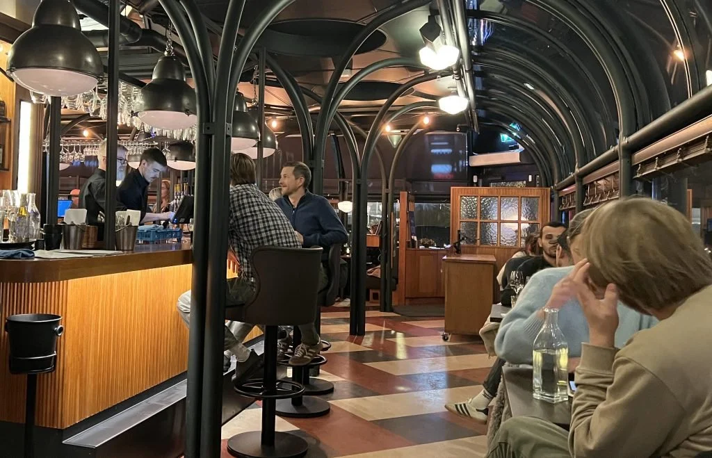 Selv om det nå i førjulstiden er mange gjester i finstasen innom, blant annet i et stort chambre separee innenfor glassburet, oppfattes nok gastrobaren som mer for hverdagsbruk. Åpen fra lunsj til langt på natt alle dager.