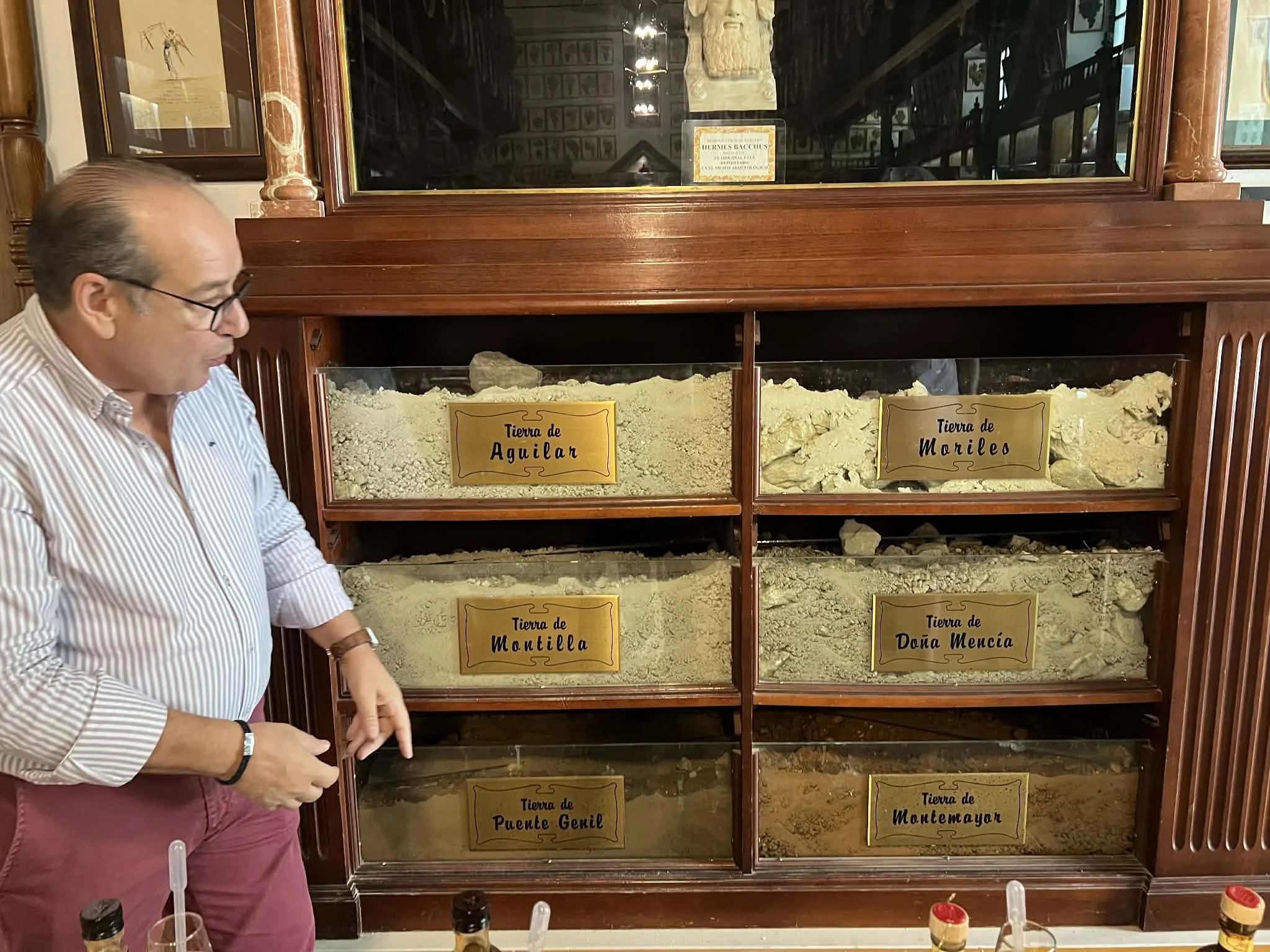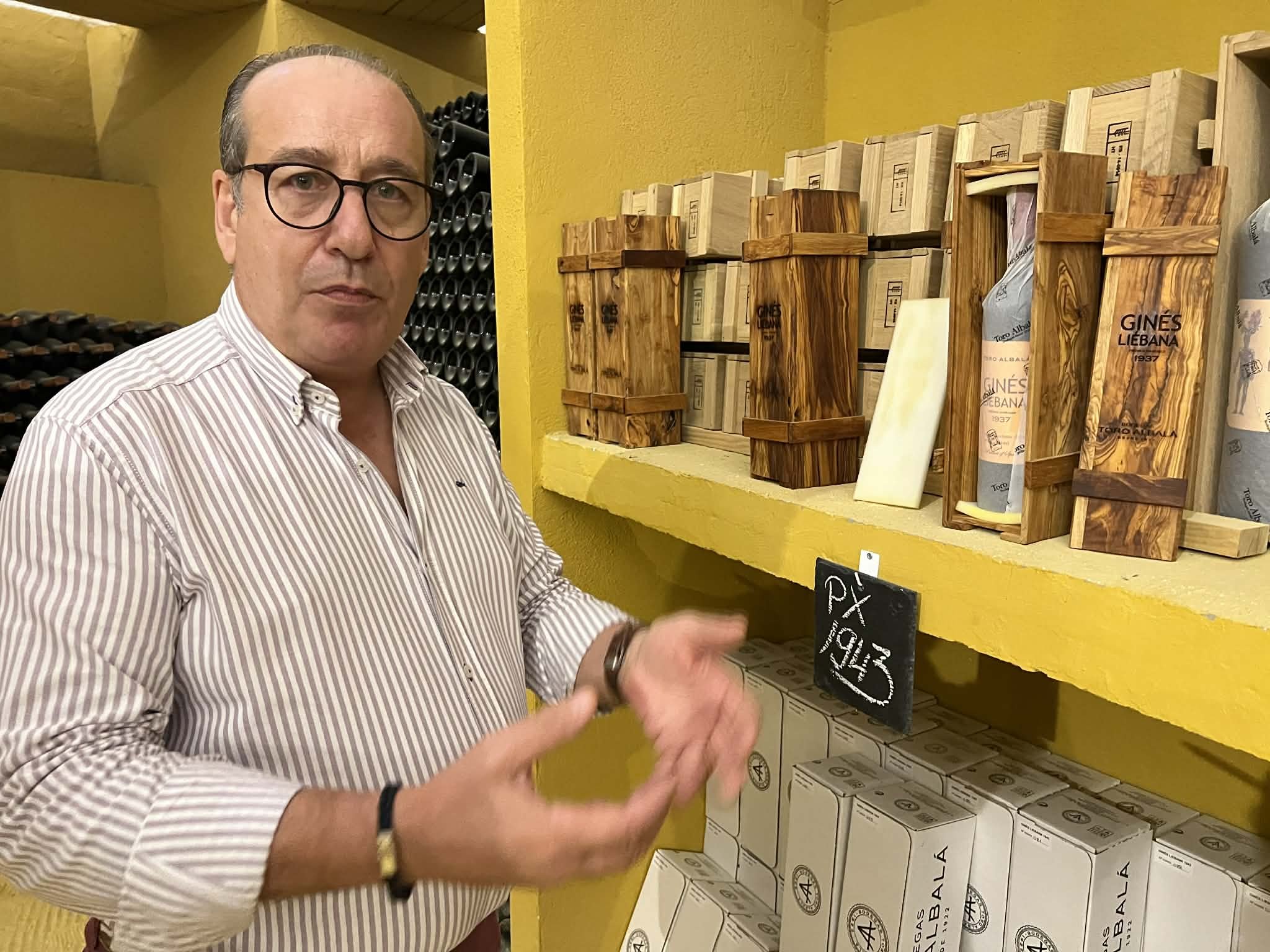 Bodegas Toro Albalá har årganger med pedro ximénez-vin tilbake til 1922. Her r Antonio Sorgato med noen tapninger fra 1943 som er tilgjengelig for interesserte. Foto: VinPuls/Ulf Dalheim