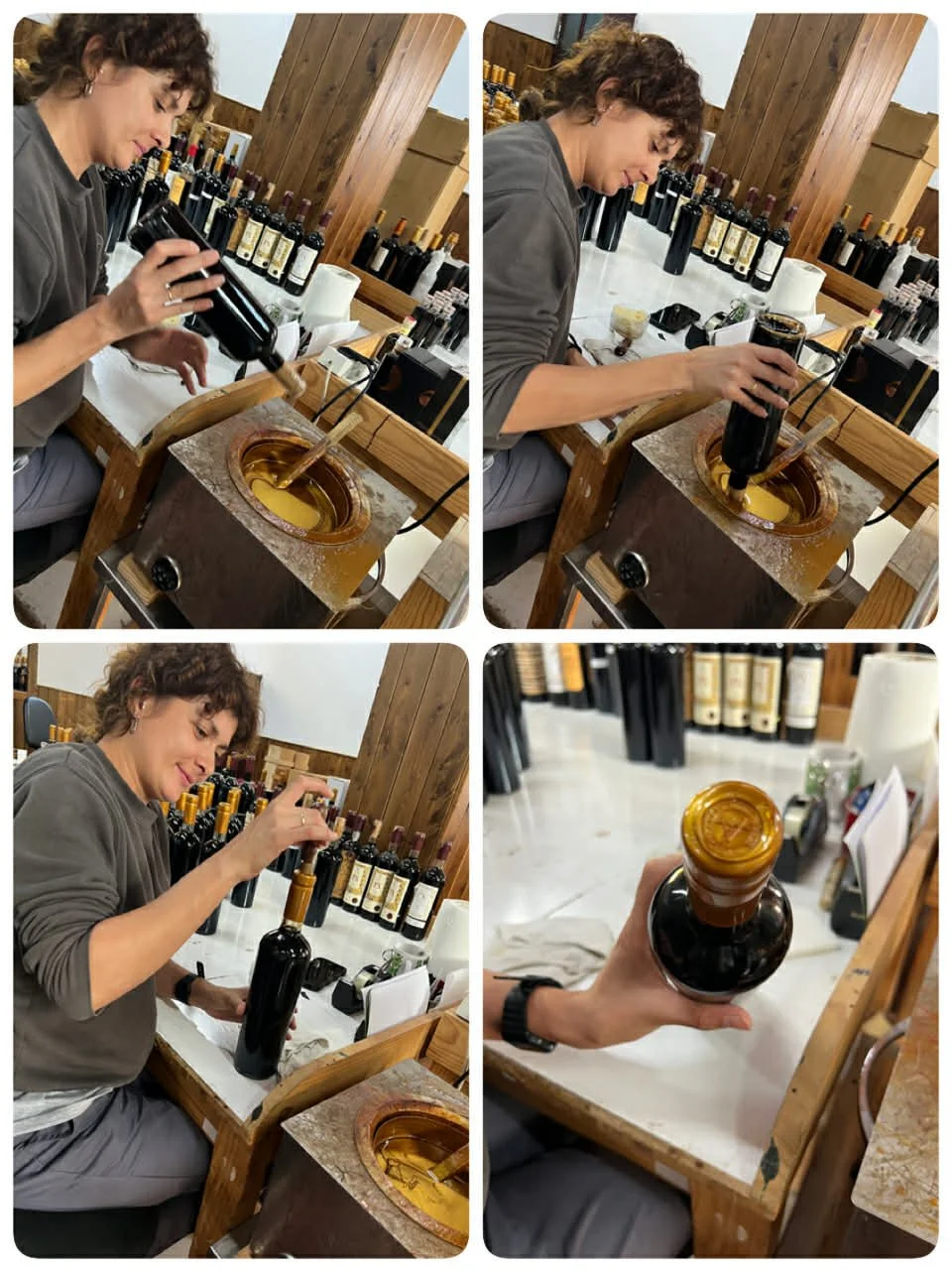 -Nå er kvalitet viktigst av alt, fra vinene til presentasjonen av dem, understreker Sorgato da vi står i et rom hvor Fatima Igeño sitter og klargjør nye flasker for eksport. Alt foregår for hånd. Fatima dypper flasketuten i talg som så avkjøles og deretter stemples øverst med firmaets våpensegl. På flere av flaskene trekker man en tråd fra talgen og ned til etiketten. Slik unngår man juks med originalflaskene.