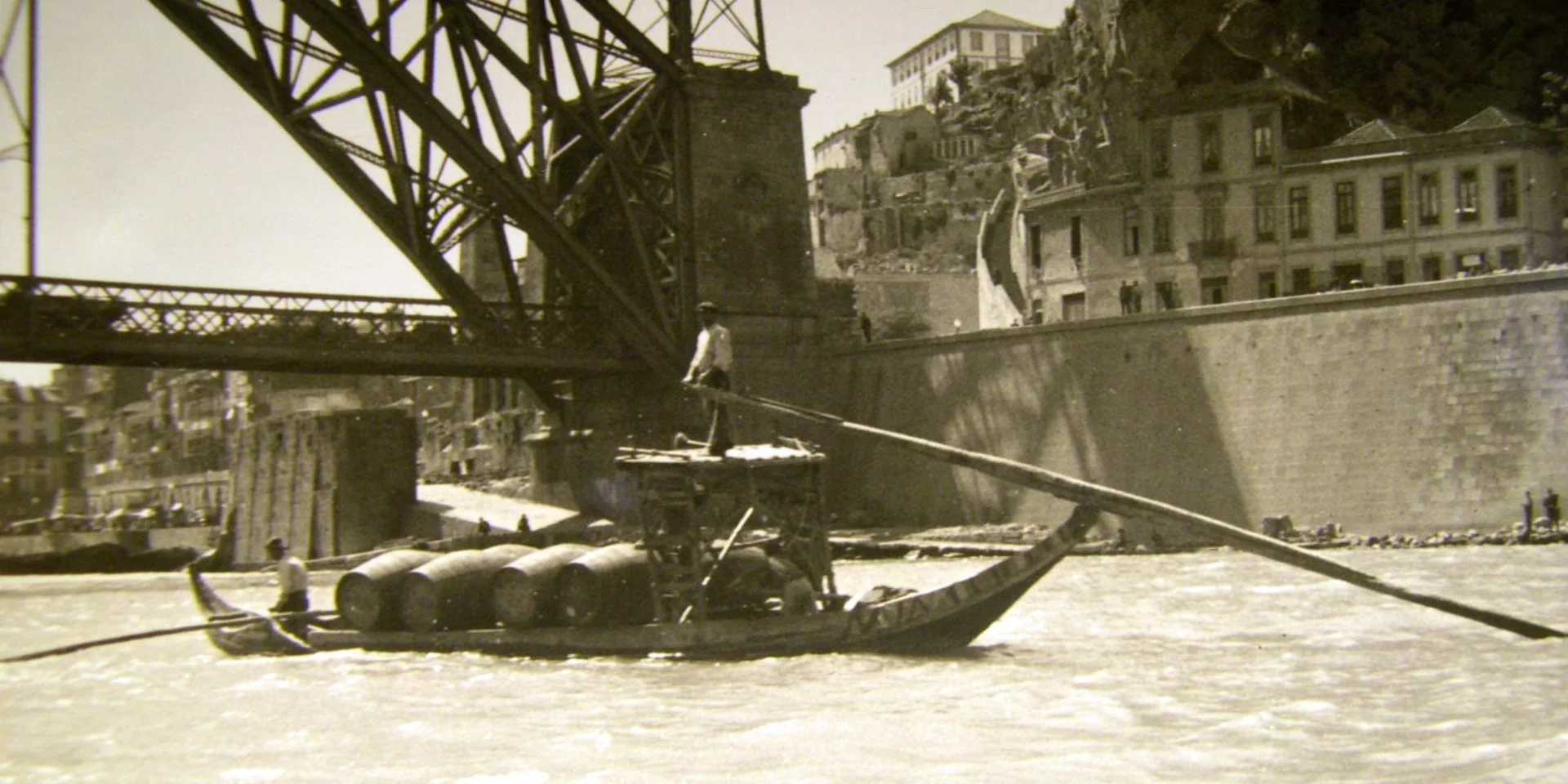 Slik foregikk transporten av portvinene nedover elva Douro fra vinhusene oppe i dalen til de store portvinshusene i byene Porto (Oporto) og Vila Nova de Gaia. Foto: Fladgate
